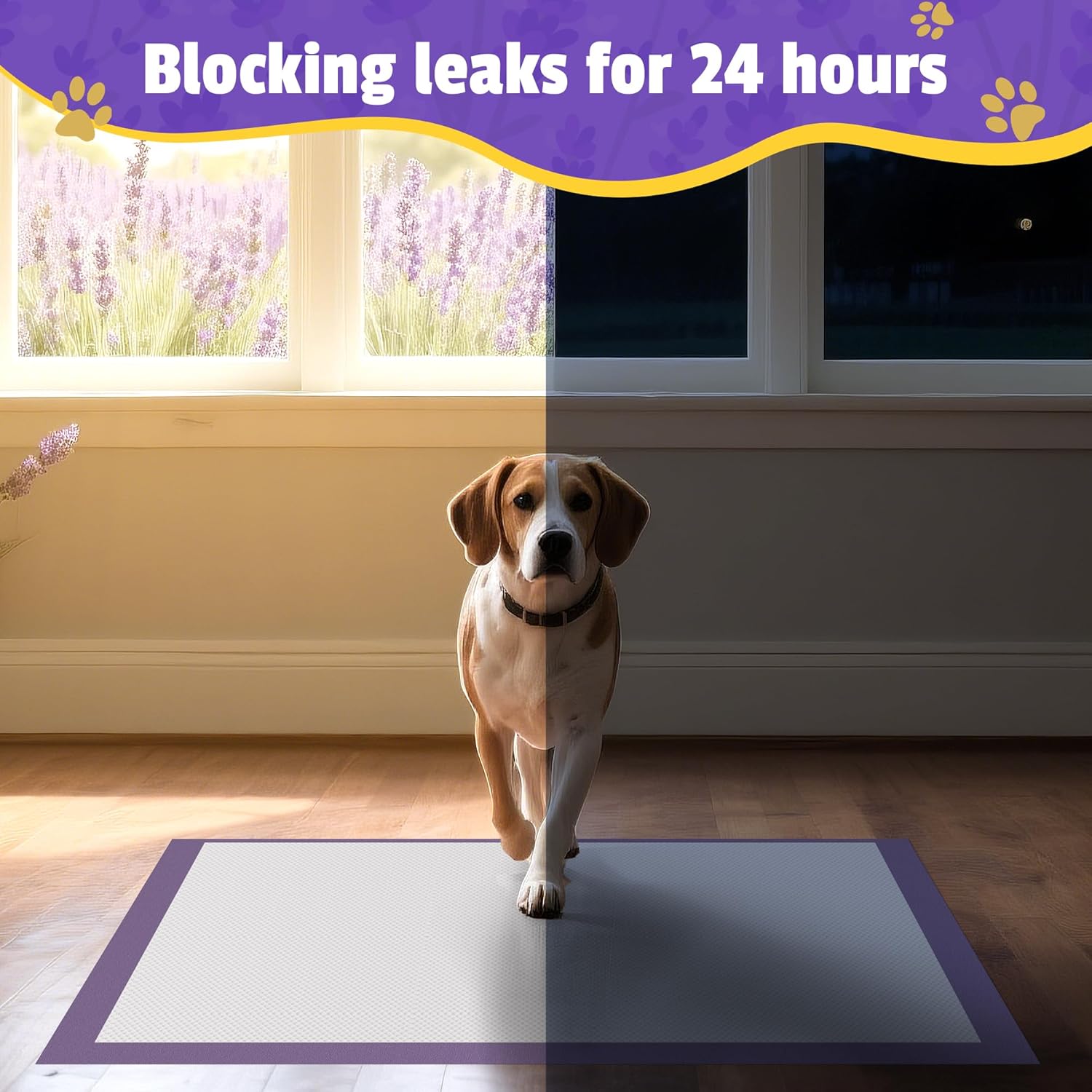 - 【Lavender Scented Odor Control Puppy Pads】Lavender-scented pee pads for dogs, natural fragrance serves a dual purpose by effectively concealing urine odors and introducing a refreshing, rather than simply covering up the urine smell, aromatic atmosphere to your surroundings. The long-lasting pleasant lavender scent leaves your home smelling fresh and clean.