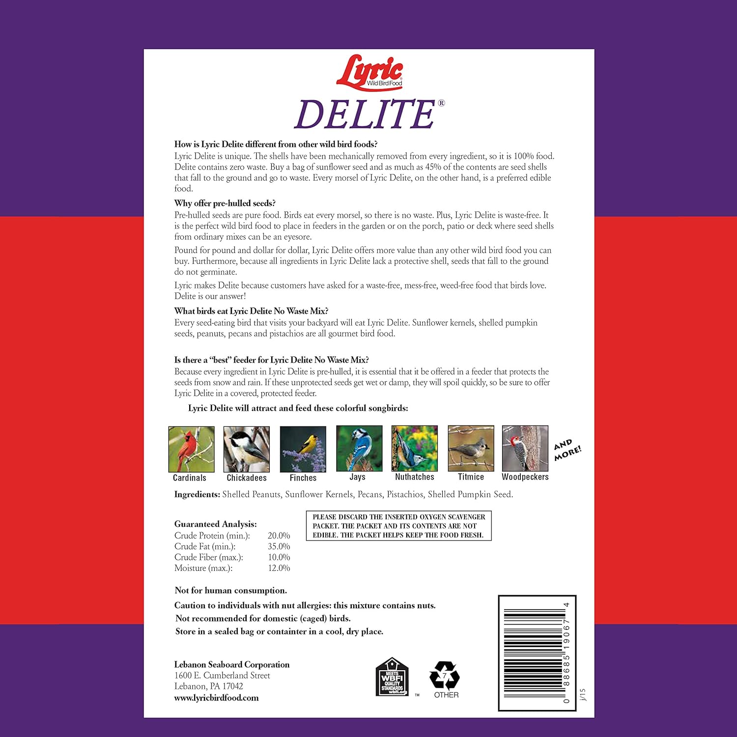 - INVITES A VARIETY OF WILD BIRDS: Attract cardinals, chickadees, finches, jays, nuthatches, titmice, woodpeckers, and more with the Lyric Delite No Waste Bird Seeds for outside wild birds