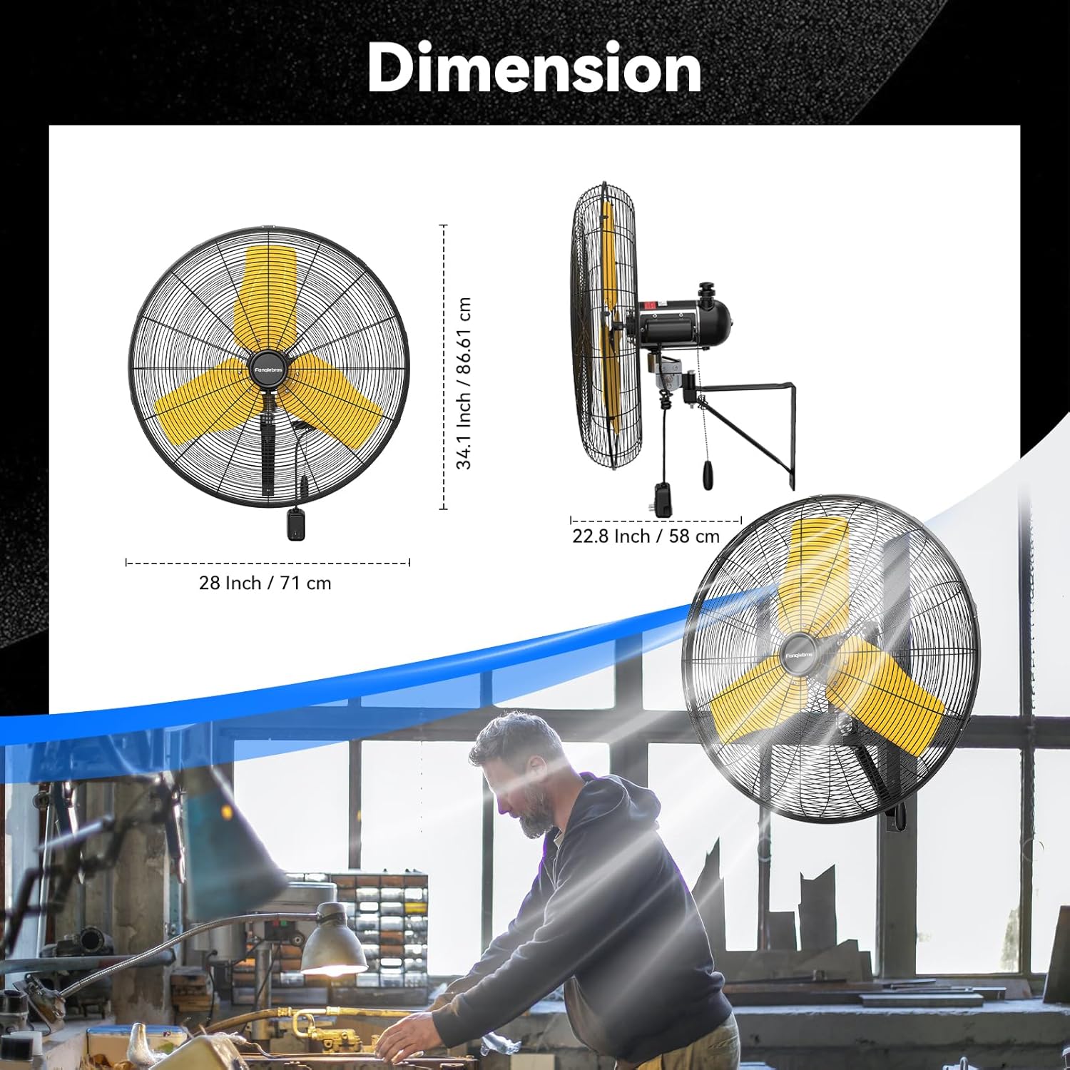 - ššØš°-ššØš¢š¬š ššš¬š¢š š§ - The heavy-duty wall fan operates at a high speed of 9500 CFM with a noise level of only 65dB, which is lower than the industry standard, creating a quieter gathering or working environment