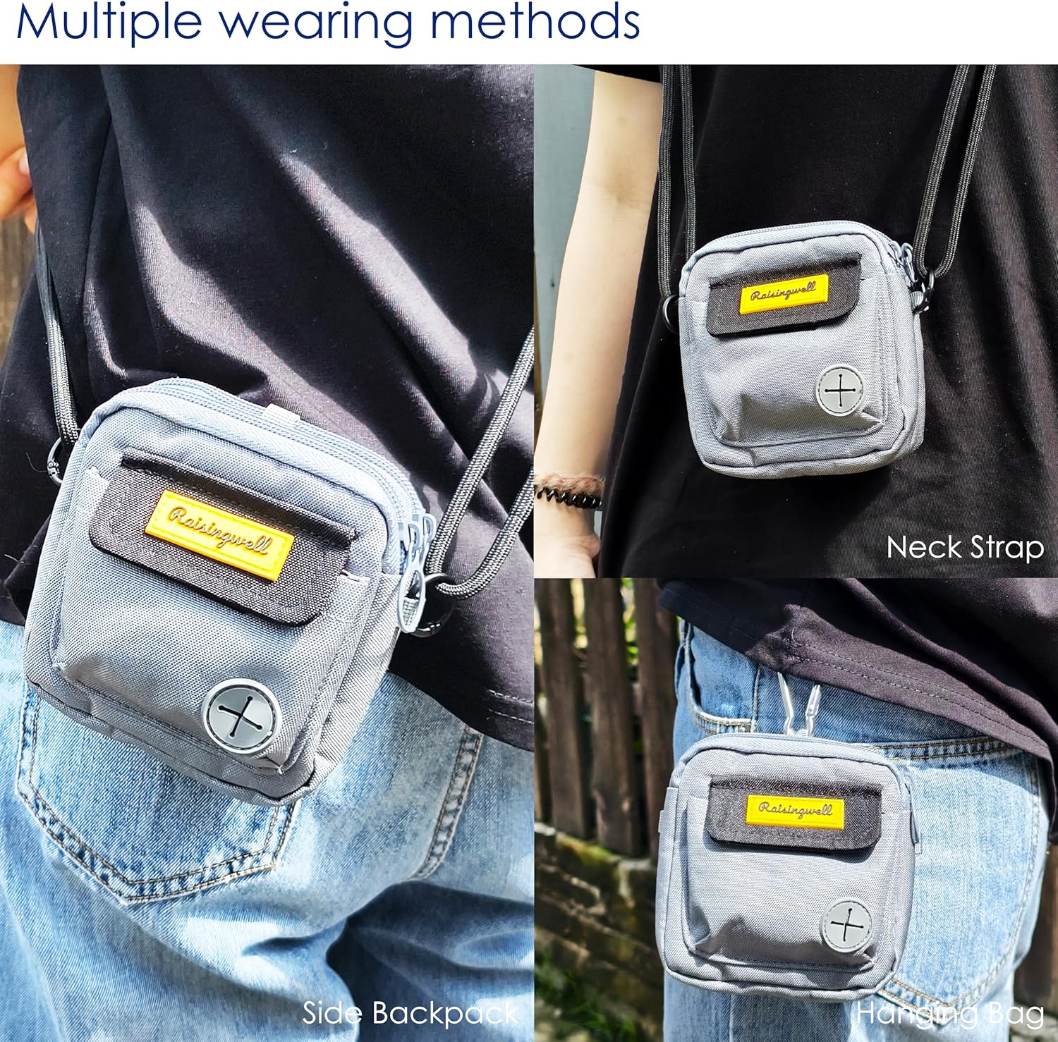 - 3、Durable Tech Material: Raisingwell's dog treat training pouchis made from durable, washable, and non-toxic fabric. Notably, its waterproof lining solves the problem of difficult-to-clean interiors of training bags.