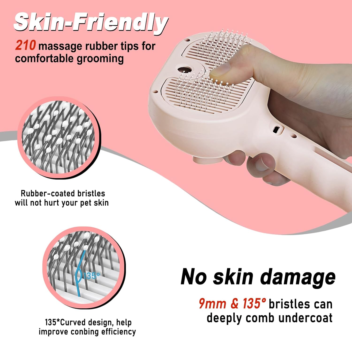- 【Pet-Friendly Dog Brush】The humanized design bristles of pet spray hair removal comb, enveloped in a protective gel, ensures that your pet's skin remains unharmed. Effectively removing dead skin and loose fur, it improves hair health.