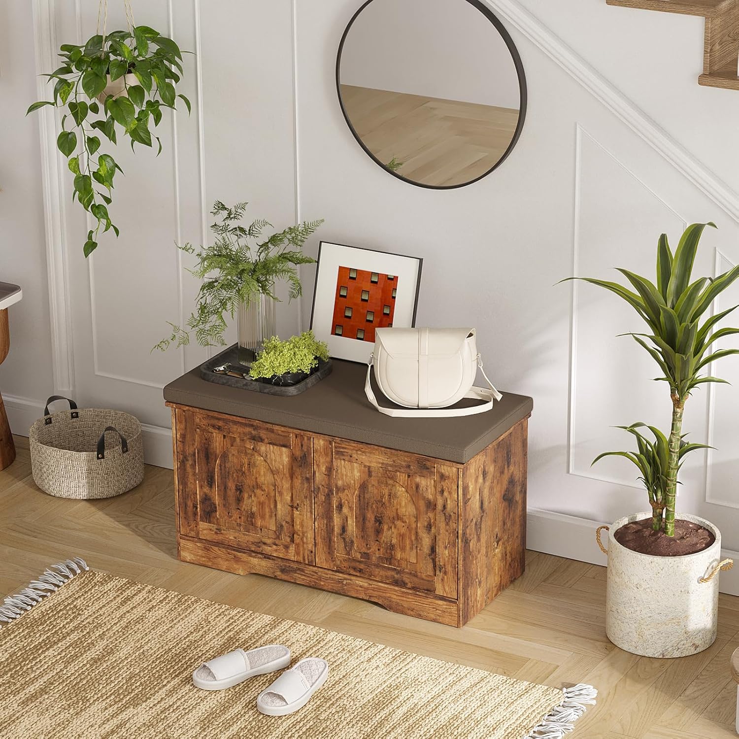 - 【Effortless Push-to-open Door 】Feature a fully enclosed design with a push-to-open mechanism, keeping shoes clean and tidy while avoiding accidental bumps against door handles during use. Reasonable height and soft cushion let you change shoes by sitting on the bench more comfortable without bending down or squatting
