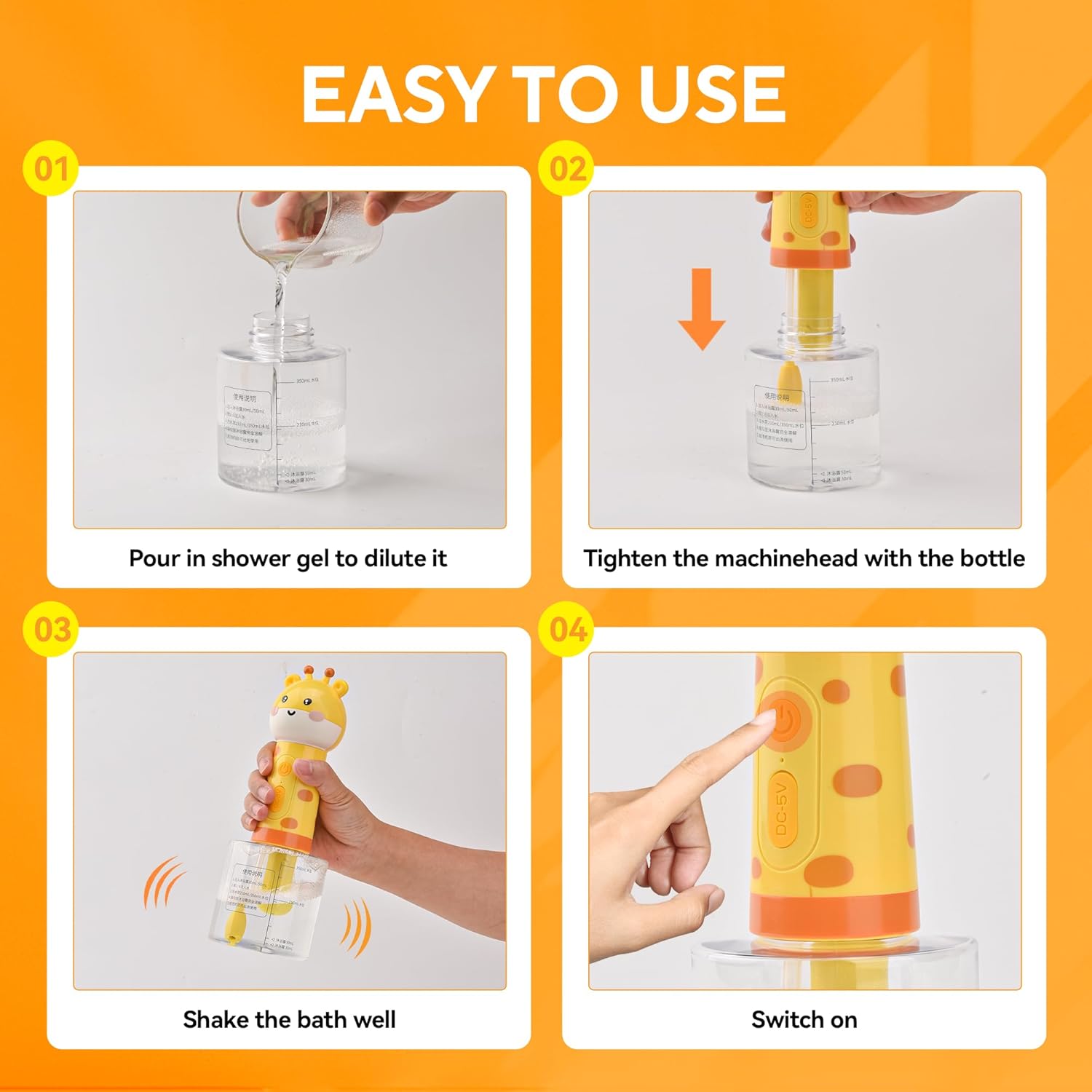 - 3.Saves 50% Shampoo + 2.5H Continuous Use Patented mixing technology creates 3x more foam using less product. The 2000mAh rechargeable battery outlasts bath time (2.5hrs/single charge) - no more mid-wash power failures!