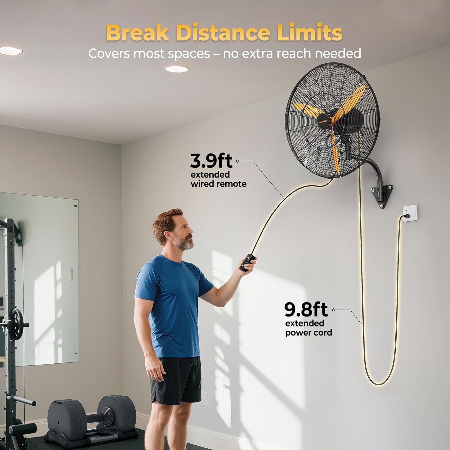 - Easy Control & Flexible Mounting: Replace fragile 2.6ft pull chain with an extended 3.9ft wired remote for durable, smooth operation from distance. The extra-long 9.8ft power cord satisfies most distance needs, while wall-mounted design saves space. Customize your cooling from a gentle breeze to a powerful gust with 3-speed control.