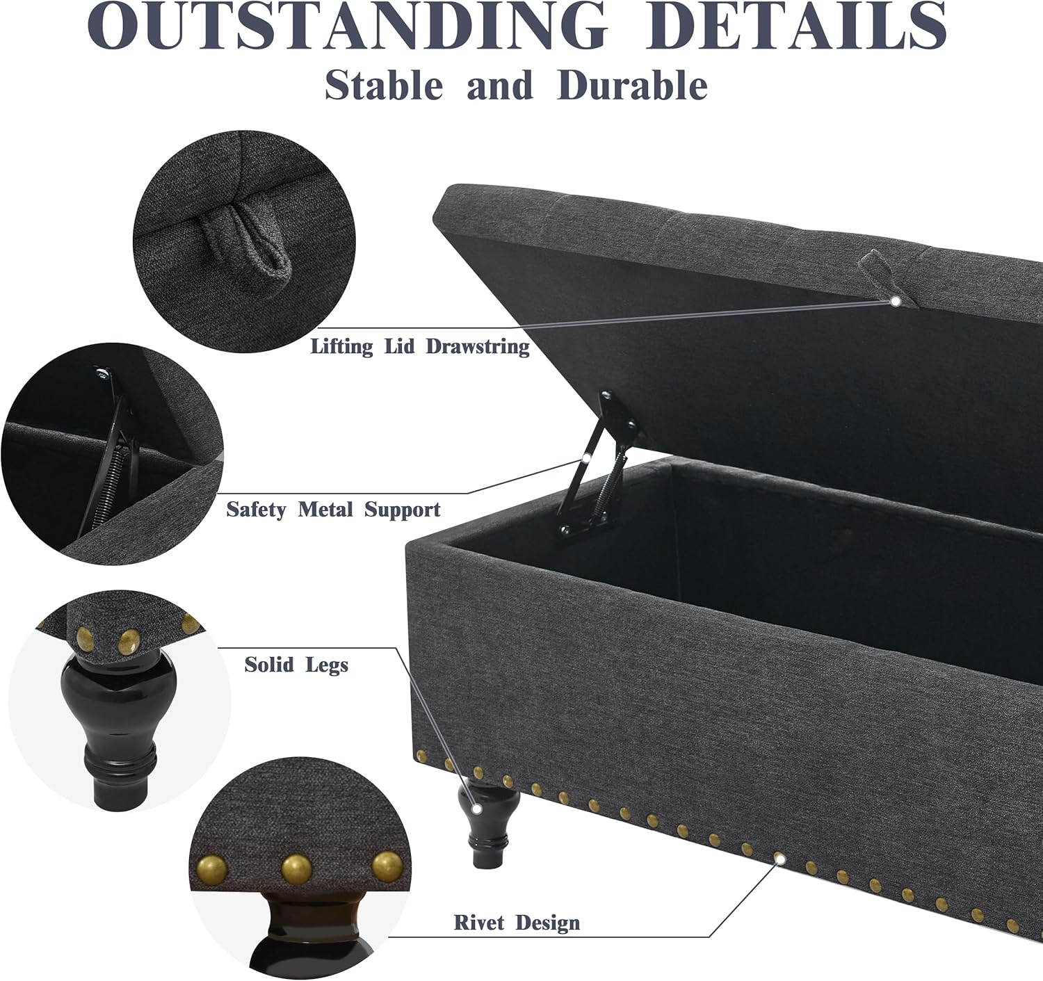 - Strong & Reliable Build: Crafted with 1.35" thick high-quality MDF, this sturdy storage ottoman bench holds up to 330 lbs—perfect as a bedroom storage bench with lasting durability and stable support