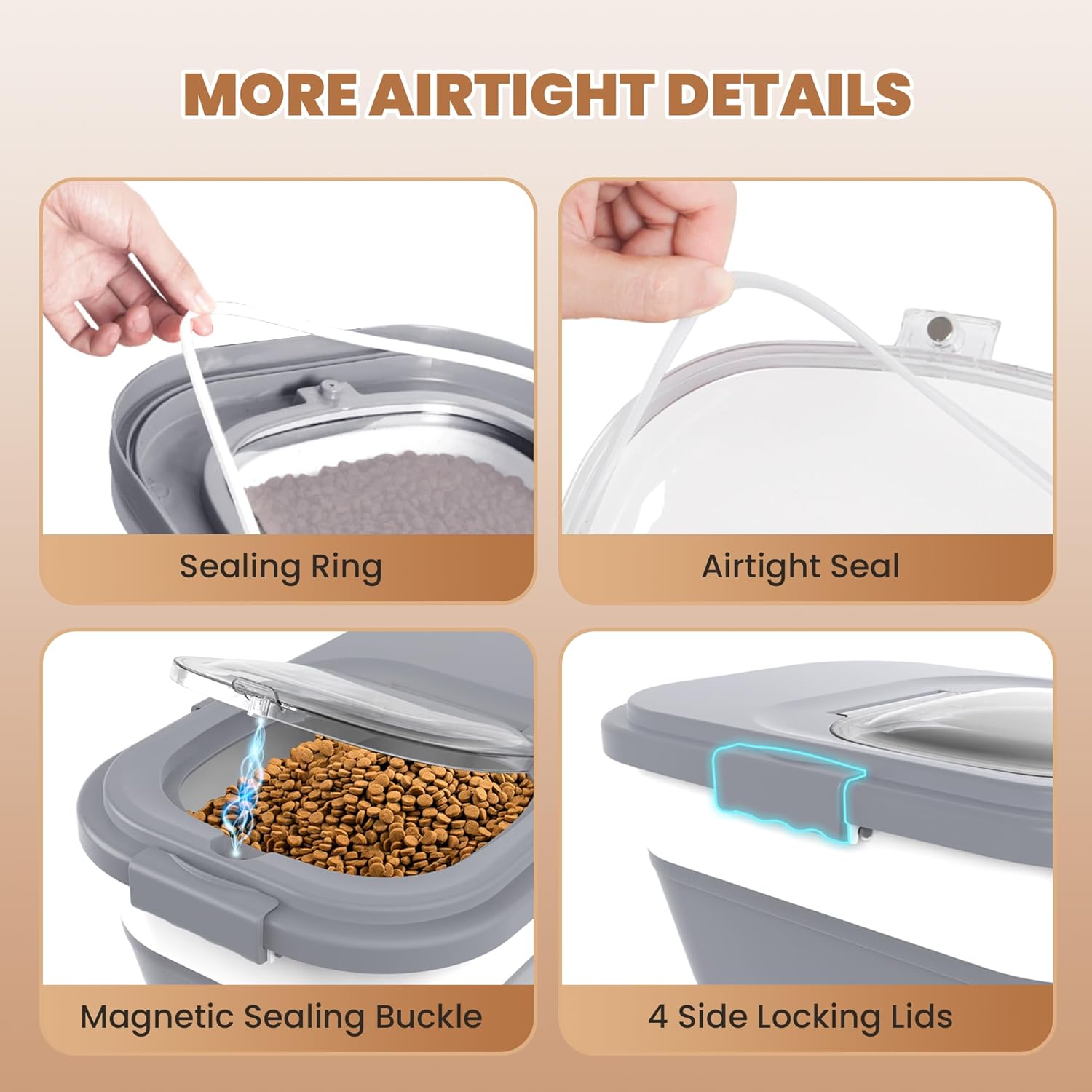 - SUPERIOR SEALING FOR FRESHNESS:The cat food container with double airtight seals and 4 side locking lids offers excellent sealing ensures your pet's food stays fresh longer, free from moisture