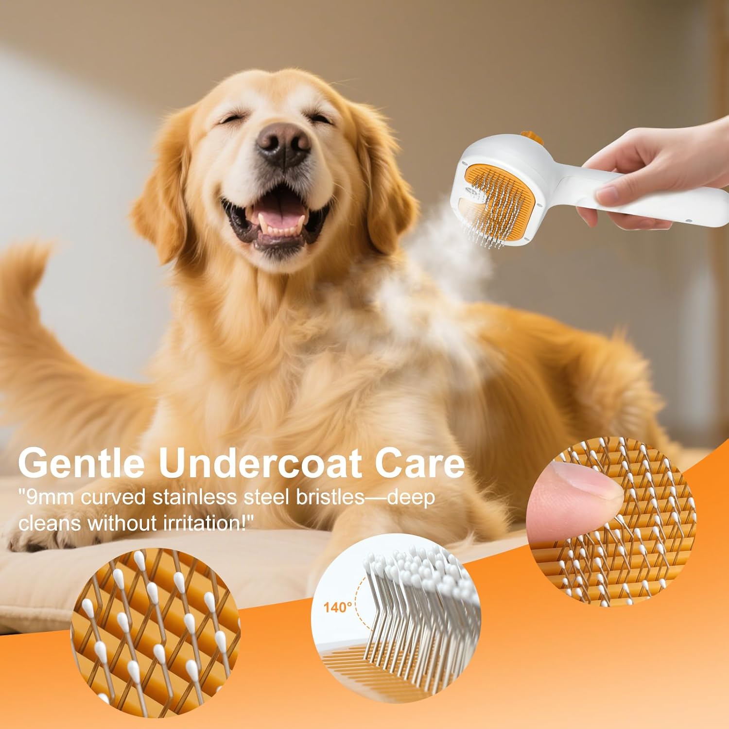 Pet Steam Brush for Dogs and Cats – 3-in-1 Pet Grooming Tool, Spray Portable Design, Suitable for Home and Travel, Ideal for Medium & Long-Haired Pets, Includes 2*Waterless Shampoo, Yellow