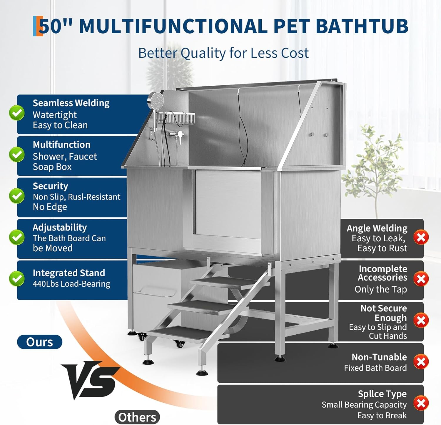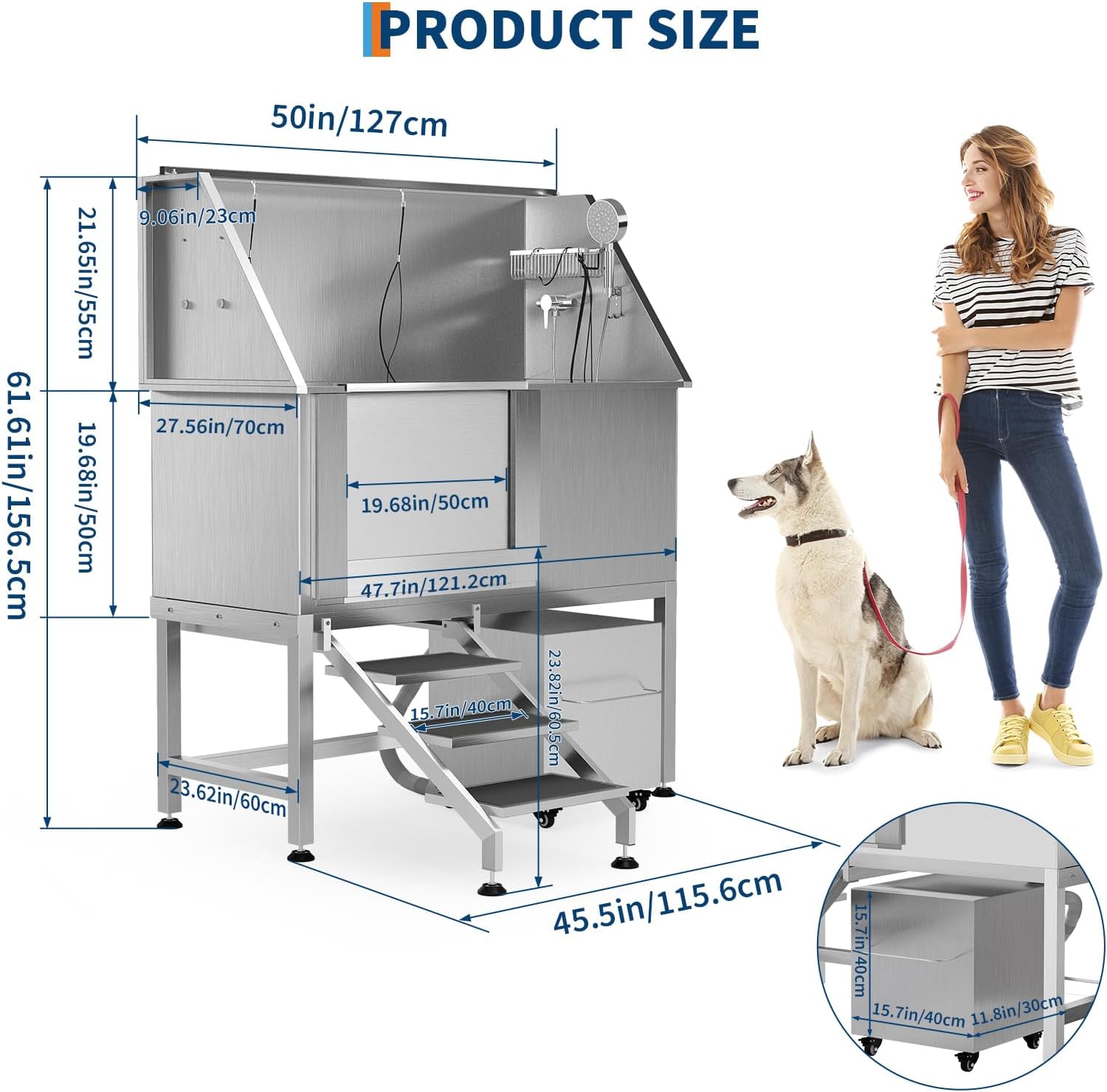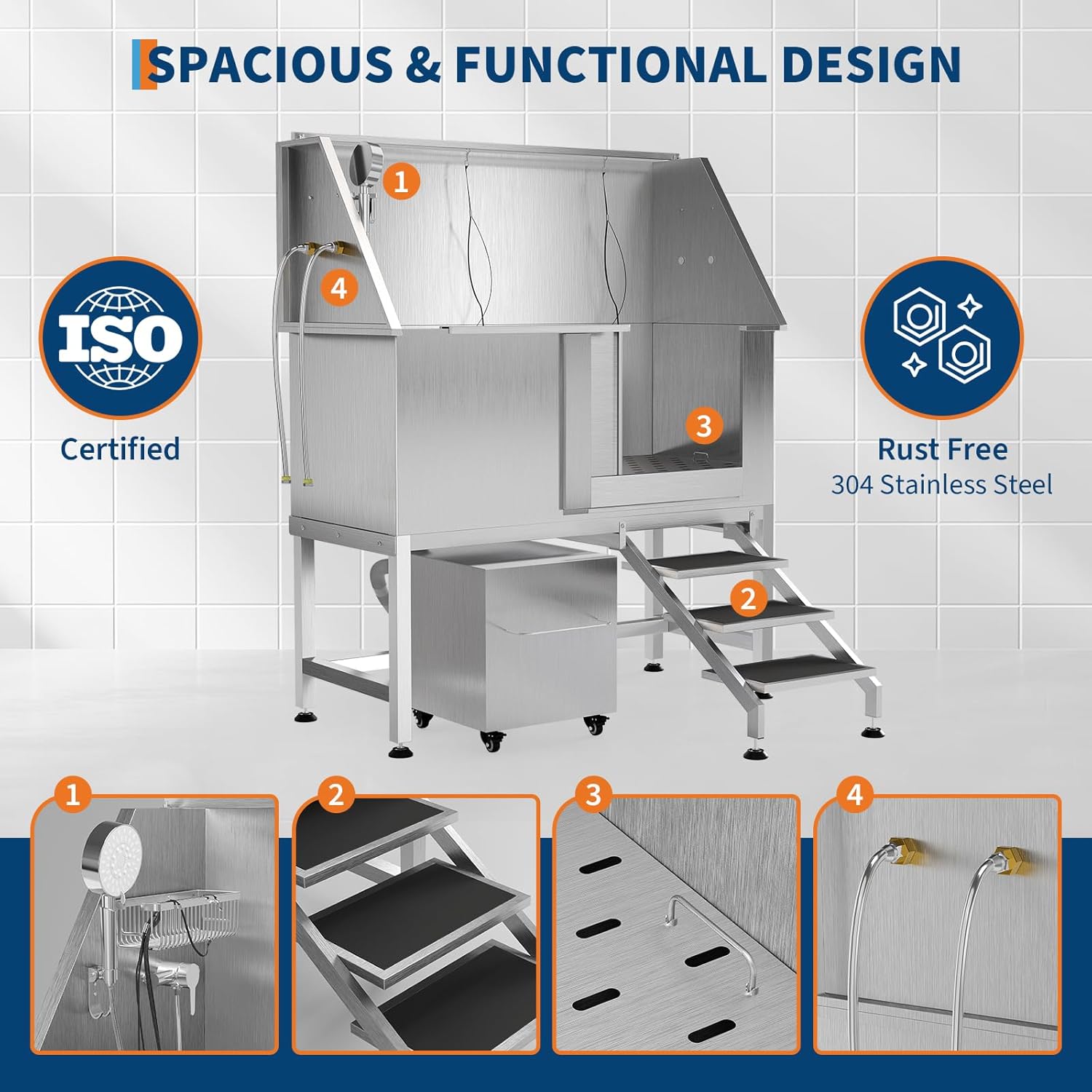 - Efficient Drainage System Removable floor grate prevents water accumulation and simplifies post-bath cleanup. Maintains tidy workspace during grooming sessions.