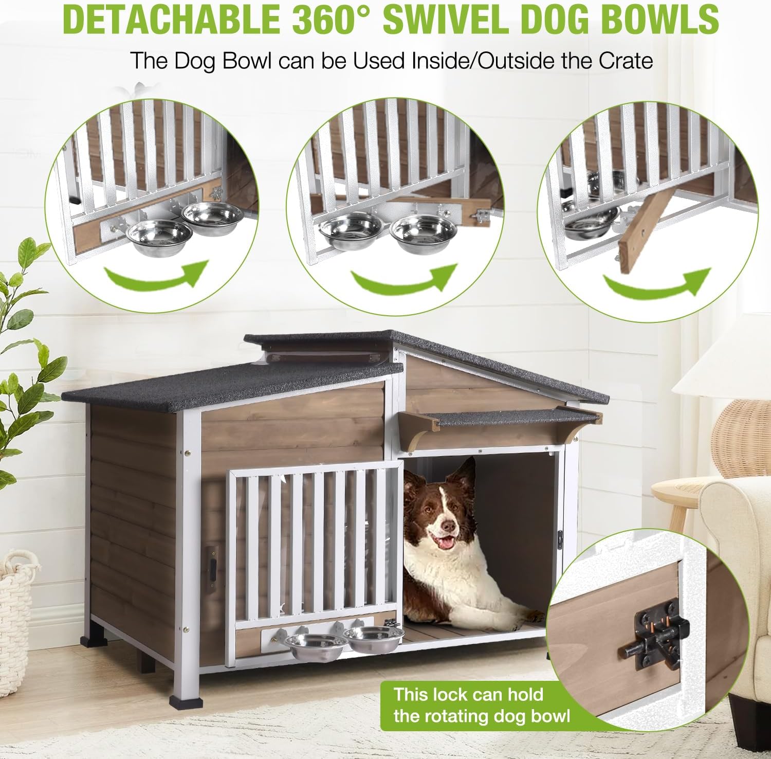 - WEATHERPROOF PROTECTION: Featuring an asphalt roof and waterproof plastic feet pads, this dog house offers comprehensive protection from rain, snow, and humidity. Keep your pet dry and comfortable, no matter the season